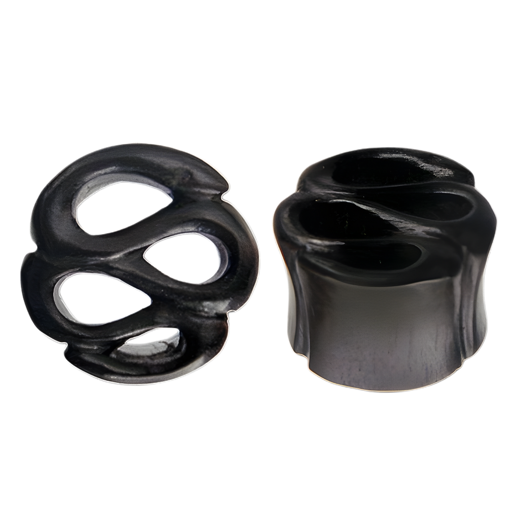 Hand-carved from rich black Areng wood, these serpent plugs feature an intricate, organic design with a smooth natural finish. Each piece is unique, showcasing the grain and tone of real wood.