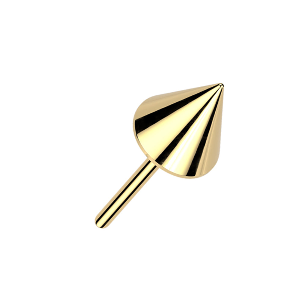 Gold implant grade titanium spike top stud to fit shafts from our titanium push fit range, with these push fit tops you can mix and match your jewellery. They’re much easier to handle than threaded jewellery. These come in 2 sizes, 3mm wide x 3mm high and 3mm wide x 4mm high.
