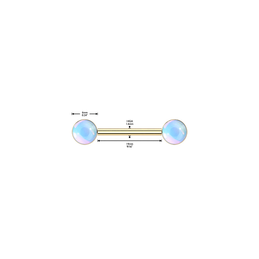 Iridescent and intergalactic! These nipple barbells have a 6mm iridescent stone set on each side, they’re push fit which is great! These are on 14mm bars.