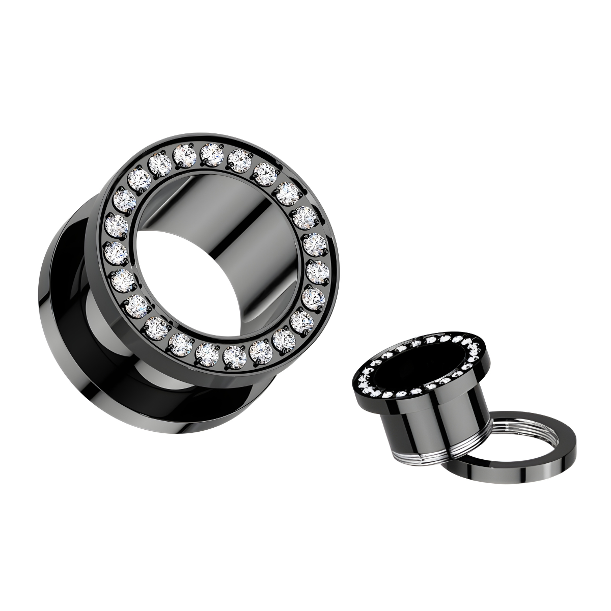 Implant Grade Titanium Double Flared Screw Fit Tunnel With CZ Rim - Black