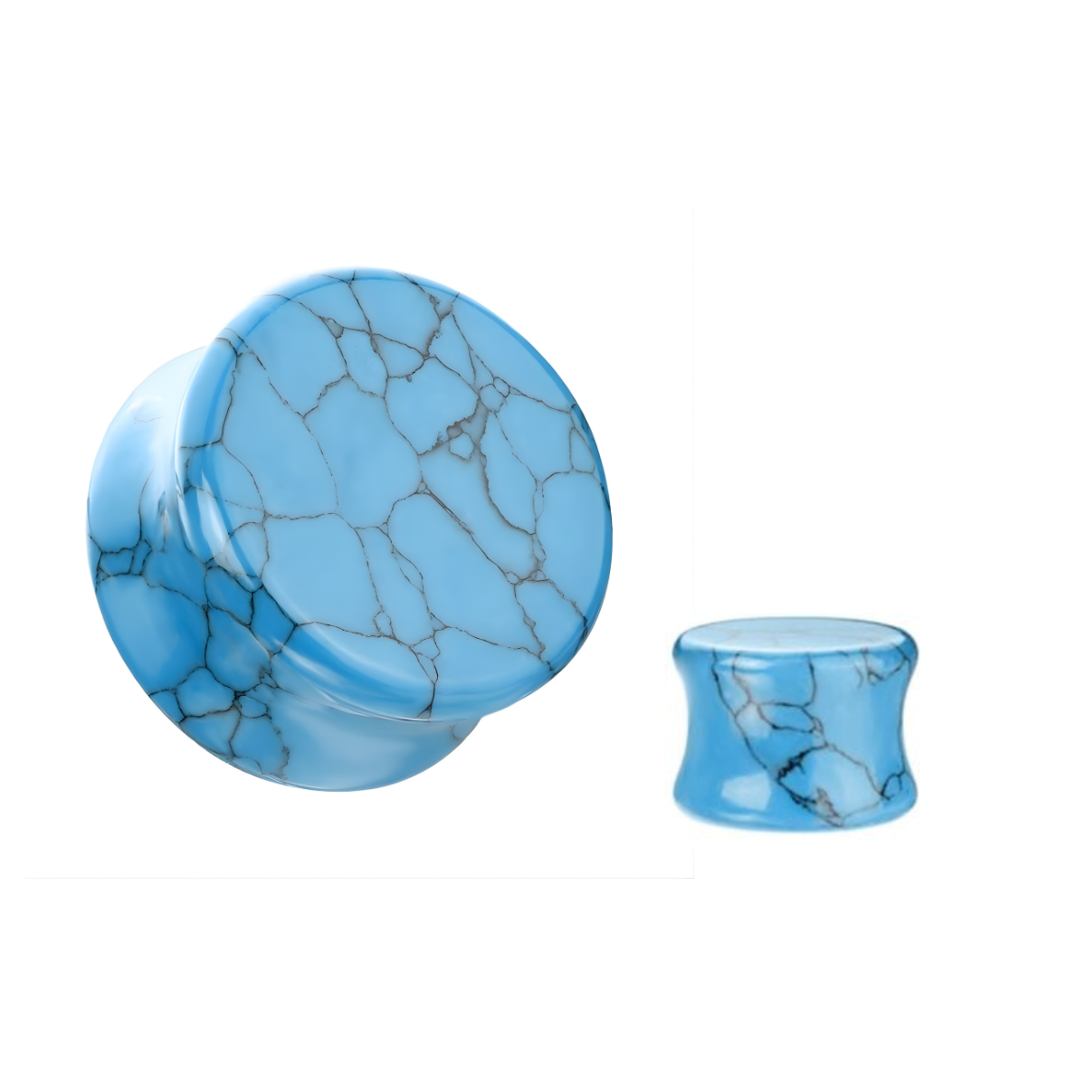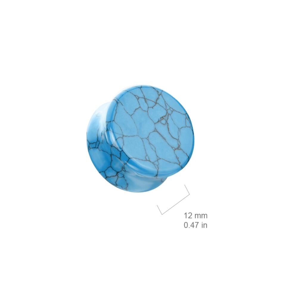 A striking natural stone plug made from turquoise with beautiful blue tones and unique natural patterning. Each piece is slightly different due to the stone’s natural variation.