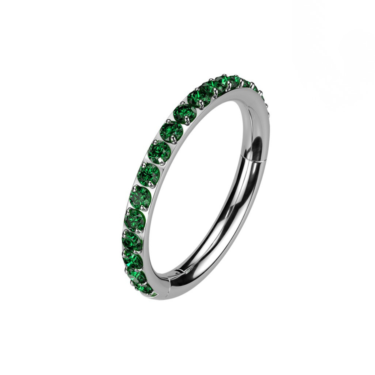 Titanium Hinged Segment Hoop Ring with Outward Facing Pavé CZ - Emerald