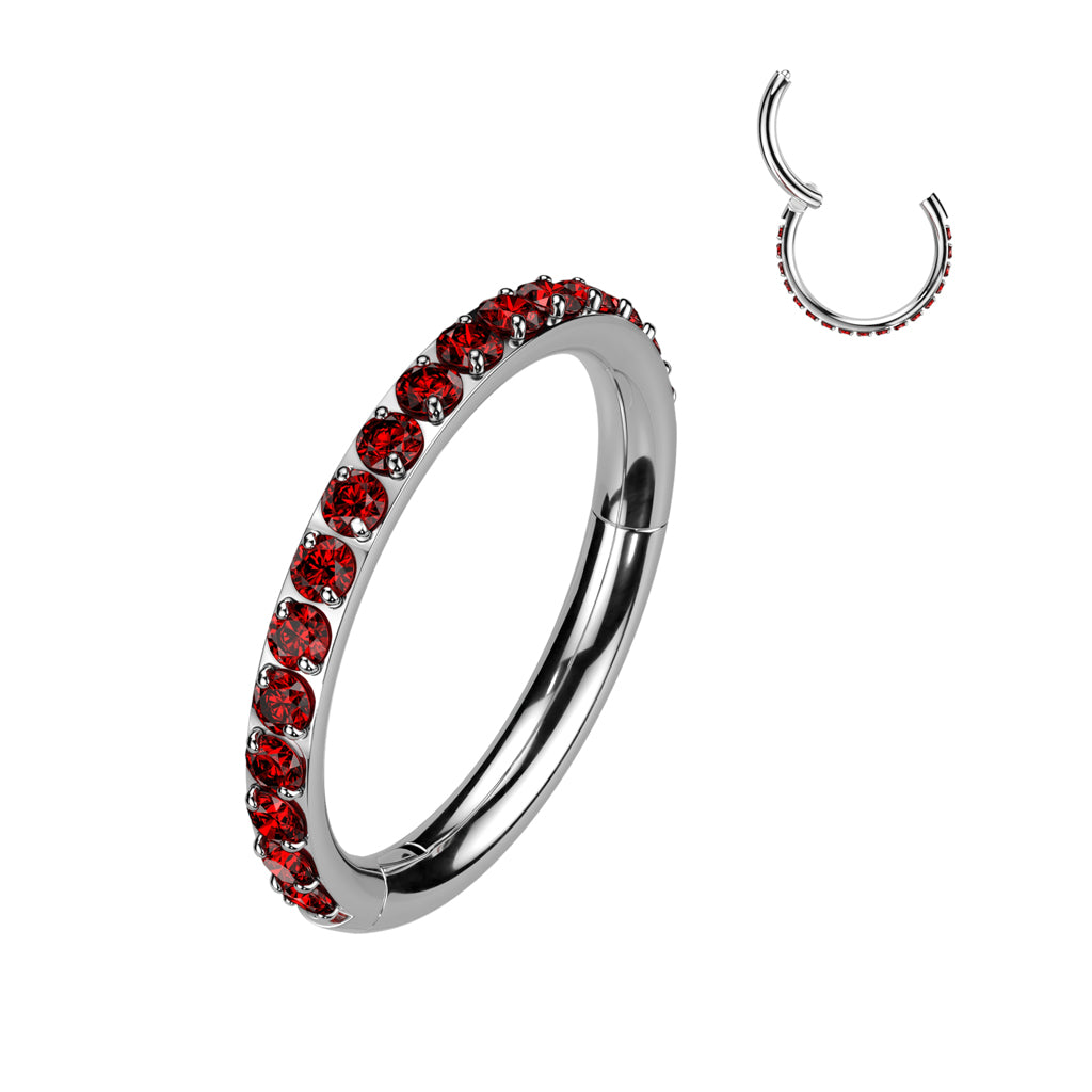 Titanium Hinged Segment Hoop Ring with Outward Facing Pavé CZ - Red