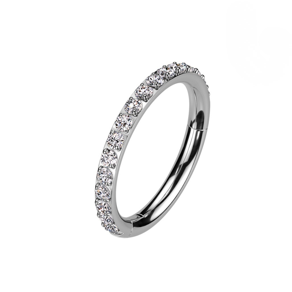 Titanium Hinged Segment Hoop Ring with Outward Facing Pavé CZ - Silver
